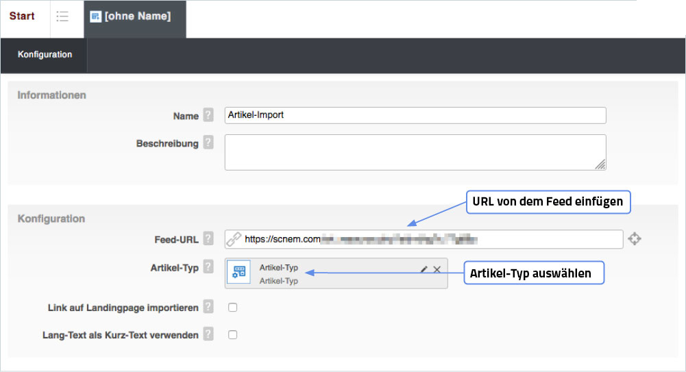 URL des Feeds und Artikel-Typ angeben