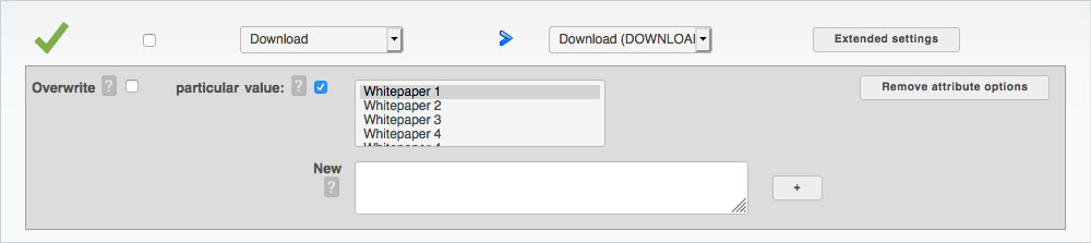 In this example, the Whitepaper 3 option is added to the Downloads multiple selection field for profiles in the Purchase Orders target group.