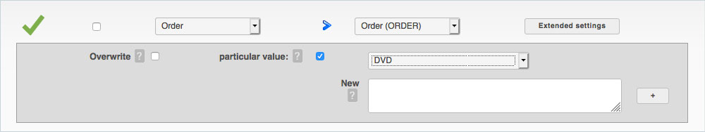 - Now you can add your own value to "New" for your import. To accept this value, click on "+". Now this value appears in the upper input field.