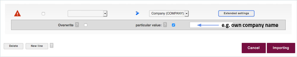 When importing a text field, the text field can be given its own value. This is useful if, for example, you are importing data from a company. The value "Company XYZ" can be assigned to each profile here.