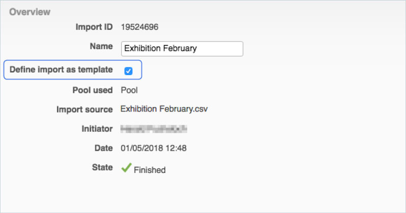 In the overview, you can see general information about the import, such as the name, date, and initiator of the import.
