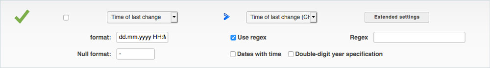 Format: Date format of your import source. Attention with Excel files: If a field is recognized as a date field, the date is automatically converted to the format DD.HH.YYYY HH:MM.